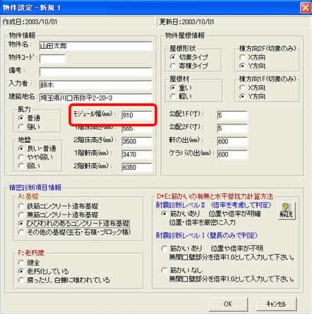 尺モジュール(910mm)の物件の場合は、モジュール幅を変更しないで下さい。また、910以外の物件の場合は、最初の設定でモジュール幅を変更してください。